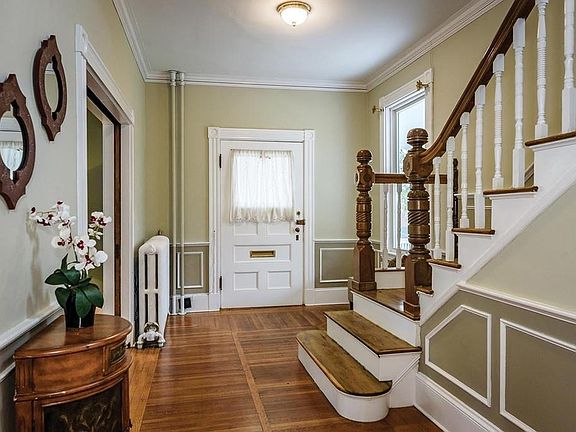 Spectacular Auburndale Victorian. This five bedroom, two and one half-bathroom has soaring ceilings, beautiful original detail and is filled with natural light. From the front entry, the entertainment sized living room is open to the family room with built-in shelving and a beautiful fireplace. The dining room has French doors that open out to the wrap around porch. The eat-in kitchen has sliding doors to the yard. The 2nd floor has four generously sized bedrooms and two bathrooms. The 3rd floor has a 5th bedroom, an office, a study and an art room. The yard has mature plantings and offers a wonderful outdoor retreat. This home has striking curb appeal and in conveniently located to 128/90, public transit and shops.