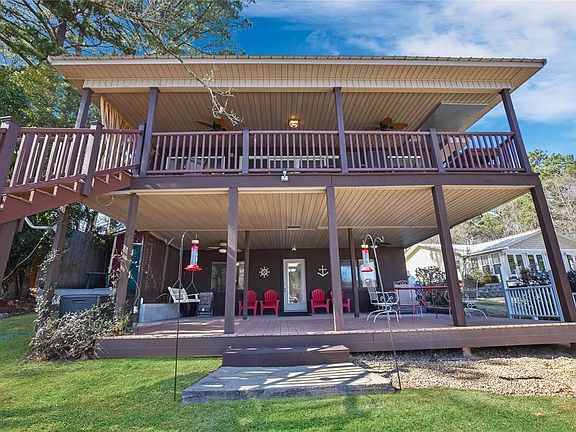 Deep water, great views, and fantastic open floor plan. This home has been updated and fantastically decorated by a local interior designer. Furnishings are available. On the main level, the kitchen features stainless appliances and serving bar. The living area offers views, views, views! The cozy den even has a fireplace. The main level has the master bedroom with bath, guest bedroom and guest bathroom. Enjoy beautiful sunrises from the covered porch and the outdoor living spaces are perfect for dining and grilling. This a beautiful east facing lake view. The lower level has views, too, with a patio, bedroom and bath and a bonus room that could serve as a den, exercise room, craft room or a small game room. And, the home is in the desirable Castaway area moments away from Chimney Rock. The lower floor has a huge storage area large enough for all the lake toys! Call today for your private viewing of this great lake home.