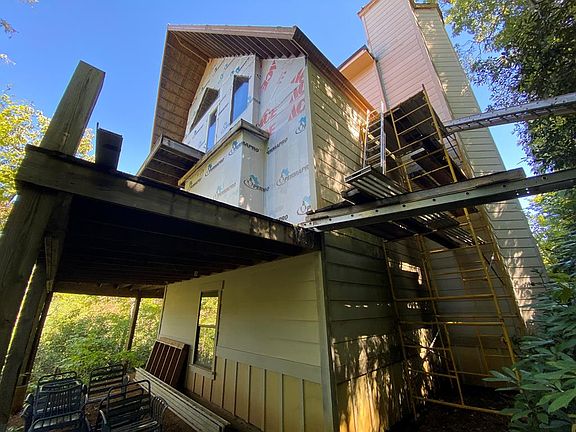 Massive views and a massive opportunity to finish out this custom build. This project has three stories and a rooftop entertaining area, with wide open panoramic views of the Nantahala Gorge area. The living, dining, and kitchen area is still open to interpretation, pick your colors and finish out as you wish. The home was built to become a 3/3/1, but rooms are only framed in, still need total finishing and appliances, sinks, etc. This will be an entertaining showpiece; three 20 ft sliding doors open the great room for fresh air and deck parties. The rooftop is another gathering area, with room for a bar, entertaining, and viewing the gorge panoramas.The second floor is Roughed In for beds and baths/closets, and leaves options open for finishes. Two vertical corridors are designed for a spiral staircase and an elevator. This property is available with an adjacent view-lot, with septic installed. The Appalachian Trail is right up the road, as well as Lake Fontana, Tsali, and the Nantahala River. Bryson City is about 25 minutes away. Sold as-is