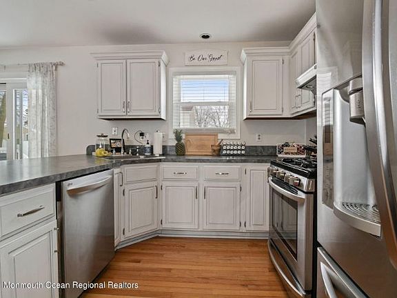 Lovely Seashore Colonial in the Lake Riviera section of Brick. This move in ready home offers an open floor plan with living dining room and kitchen open to family room. Three nice sized bedrooms on the 2nd floor with a newly updated ensuite master bath. Additional full bath on 2nd floor makes this a terrific floor plan! Sliders off the family room lead to large deck and terrific above ground pool for entertaining, The 1 car attached garage and large back yard complete the package. Home is neat as a pin and will not disappoint. This sweet charmer won't last long! Close to shopping, schools and approx 5.5 miles to local beaches. Professional photos coming soon!