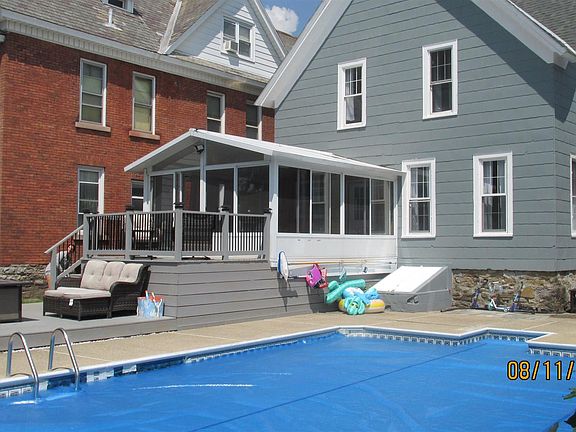 Little bit of quiet paradise right in the city. 3BR Move in ready home. Enclosed front porch, laminate flooring, new stainless appliances, living room w/ gas fire place, nicely done kitchen with breakfast bar, large 3 season room with 2 decks and a paver patio to an inground pool, fenced in yard. New 1 car detached garage with storage, off street parking. Spacious bedrooms with a 3rd story that is finished, to use as a game room, teen hangout or just for storage. Very spacious master bedroom with walk-in closet. Neutral colors throughout home. laundry in 1st floor 1/2 bath. Full basement with walkout. Close to hospital, schools, park, shopping. easy access to Albany, Schenectady, Saratoga, Ballston Spa and Malta area.
