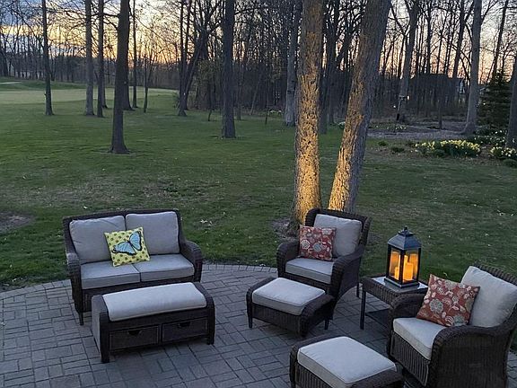 This beautiful, well-maintained 3 bedroom, 3 bath RANCH located on a wooded homesite on the Aberdeen golf course has so much to offer. Great rm boasts a fireplc, surround sound & picturesque views of the backyd & golf course. Hrdwd flrs flow thruout great rm, DR, kitchen, office/den & guest bedrm. Kitchen offers newer stainless appliances (2020, granite counters, breakfast bar & eating area that leads to a lrg paver brick patio. Enjoy the open concept living & split bedrm flr plan. Master Bedrm has large walk-in closet & private bth that has double sink vanity quartz countertop, lrg tile shower & whirlpool tub. Mst is located on the opposite side of the home from the other bedrms & laundry rm. Basement is finished with family rm (pool table inc., theater rm, craft rm, 3/4 bath & additional laundry rm. Need storage There is also a lrg storage rm in bsmt with outside exit & walk up storage over garage. CHECK WITH AGENT FOR LIST OF RECENT IMPROVEMENTS. This home is a MUST SEE