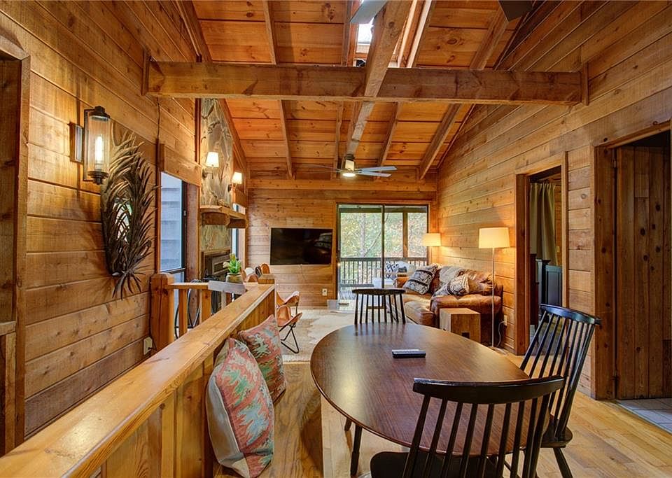 Updated Blue Ridge cabin with established investment potential! Located in the sought-after community of Rustic Ridge, this 2 bed/2 full-bath cabin is ideal for investors looking for a short-term rental or families longing for a personal vacation retreat. The seller has tastefully updated the cabin with contemporary touches, all while maintaining its original, cozy-cabin feel. The main level holds the kitchen, an open concept living/dining room, a privacy-curtained family room (that can also serve as an office), a full bathroom and a primary bedroom. The lower level features a sizable den area with the opportunity for accommodating extra beds, seating, storage and more. Also located on the lower level is the second primary bedroom, a stunningly renovated full bathroom, and a spacious laundry room with exterior access and ample storage space. There is a rear-facing deck on each level, with flawless views of the autumn-painted trees. Just 10-12 minutes away from highly-rated restaurants in Downtown Blue Ridge, such as The Black Sheep, Rum Cake Lady and many more! *Agent is seller*
