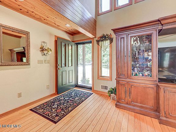 Make an offer on this COMMUTERS DREAM in a spectacular private setting with a backyard oasis on nearly 3 acres! This must see Custom Contemporary Home is just minutes from shopping and schools. Great Location! Five minutes to 195, GSP Exits 91 & 98. Near the border of Wall Township by Allaire State Park! Just 15 minutes to Belmar Beach! When you enter this truly unique open & airy home, you step into a large great room w brick wall & over-sized wood burning fireplace, wood plank knotty pine cathedral ceiling, skylights, & custom hardwood floors. Off the great room is a large 1st floor bedroom & large full bathroom. A large sunroom boasting 12 easy-clean tilt windows and two ceiling fans lead to the custom huge two level stone patio with custom stone planters & fire pit.