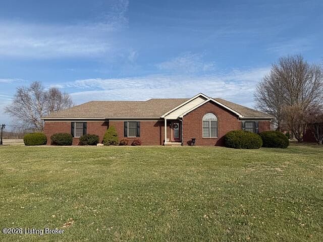 SPARKLING INGROUND POOL awaits you at 290 Ed Pile Rd. Great 3BR 3.5 bath brick ranch style home with finished walk up basement, two car attached & two car detached garage w/ 1/2 bath situated on large .86-acre lot in the quiet country atmosphere of the Woodlawn area of historic Bardstown in Farmington subdivision. Excellent curb appeal greets you as you enter into the vaulted Living Room with laminate floors. Eat in Kitchen offers plenty of nice cabinetry, stainless appliances & convenient breakfast bar. Spacious carpeted primary bedroom with decorative trey ceiling. Primary Bath with nice double sink vanity. Laundry is housed on the main level. Two additional bedrooms & full Bath complete the main level of the home. Venture downstairs to the finished basement where you will enjoy a nice Den area with freestanding propane fireplace. Full finished tiled bath with walk in shower. An additional 4th bedroom (no window is also housed in the basement). Enjoy the upcoming summer in the 18x36 sparkling salt water inground pool with patio & great large back yard for additional pleasure. Let's go take a look today! Give us a call for your personal tour of this great home!