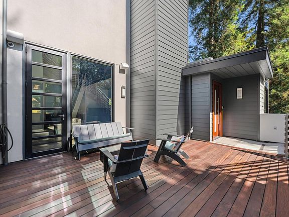This newly built contemporary smart home blends modern sophistication with the serenity of nature, just steps from the celebrated Dipsea Stairs. Designed with dramatic architecture and intelligent detail, the home features expansive windows on every level, filling interiors with natural light and framing sweeping forest and valley views. With 4 bedrooms, 3.5 baths, and an elevator to all levels including garage, the open floor plan offers spacious living ideal for comfort and entertaining. The chef's kitchen boasts Quartz counters, custom wood cabinetry, stainless appliances, and a large eat-in island flowing seamlessly to dining and living rooms. Multiple oversized Ipe decks and sunny outdoor spaces extend the living experience, while a private hot tub provides the perfect retreat. The primary suite is a sanctuary with spa-inspired bath and walk-in closet. The lower level includes three bedrooms and two full baths. Highlights: solar with backup battery, full two-car garage with Tesla hookup, 4+ car off-street parking, and rare street-to-street lot. Minutes from downtown Mill Valley's shops, dining, parks, and award-winning schools with easy access to Stinson, Bolinas, and San Francisco this is a modern showpiece and lifestyle opportunity like no other. Love where you live.