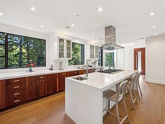 Large eat-in islandPrivate hot tubExpansive windowsNatural lightCustom wood cabinetryQuartz countersOpen floor plan