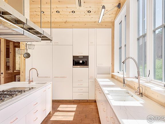 Experience the secluded elegance of this custom-designed mountain retreat, where luxury meets tranquility in a breathtaking setting. Poised on 3.9 acres at the end of a cul-de-sac this fully renovated, an entirely bespoke build-out is showcased with custom finishes and features throughout. Reminiscent of a rustic mountain cabin, a cedar exterior modernized by black framed windows is set against sprawling views of Long's Peak and the Arapahoes. Residents are ushered into an open floorplan with the flexibility to pivot from a three-bedroom with a den and home office to a full five-bedroom, five-bathroom layout. Gorgeous finishes throughout include custom-milled interior wood siding and hand-dressed local sandstone. A detached guest house offers a private escape for visitors with a kitchen, living area, bedroom, bathroom and a patio.Peaceful mountain living and bustling city life converge on this private lot, with national forest and nature trails right outside the front door. Coveted city amenities are easily within reach, with Broadway and rapidly developing North Boulder located just 7 minutes away from Broadway, 10 min to Foothill Elem and 15 mins to downtown, schools and Whole Foods just 15 minutes away. This home is protected by three fire stations and is a Certified Wildfire Partners property. Surrounding streets are plowed by the county for convenience.