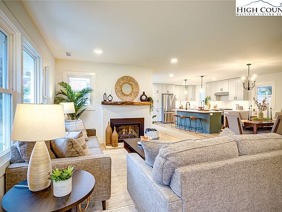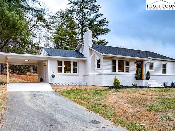 Thoughtfully remodeled 2 bedroom 2 bathroom + bonus room home, located on a gentle 0.48 acre lot, minutes to Downtown Boone, shopping, and Hardin Park School. Light and bright with an open floor plan, this charming 1950s home feels clean and modern. The large kitchen was designed to provide ample storage and counterspace, for those who love to cook. Island seating and a seamless transition into the dining and living areas make for a wonderful gathering space. The bonus room off the kitchen, with its own entrance and views into the back yard, could be used as a home office, mud room, playroom, etc. There is abundant parking with a carport and secondary driveway leading to the basement garage. The partial unfinished basement is open to a crawl space where a vapor barrier and commercial grade dehumidifier are installed. New roof, flooring, HVAC, electrical, plumbing, spray foam insulation, appliances, gas fireplace, fixtures and finishes. Broker Interest.