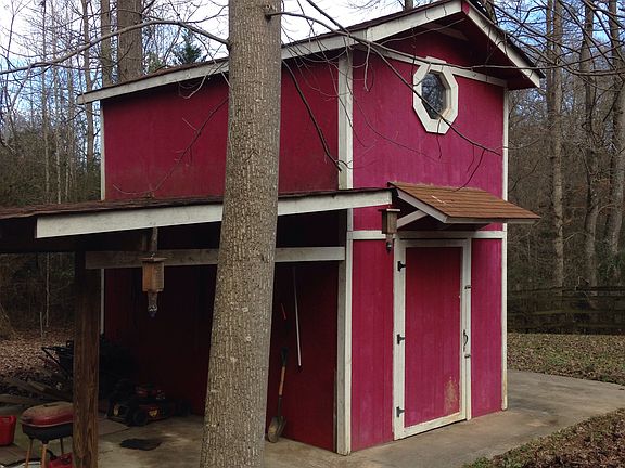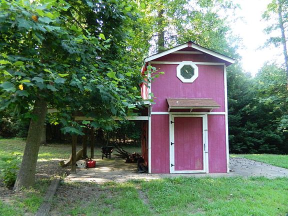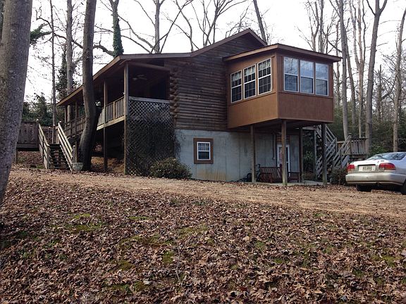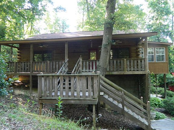 Neat log home in rustic setting amid oaks on a lovely tract of land suitable for goats and chickens. Shaded area that has some fencing in place will clean up easily for your farming desire and includes a creek! The house has a rocking chair front porch, a patio for lingering outside under the sunroom as you cook out or just enjoy the quiet and solitude of the country. Low level of the house features a kitchenette, a den, 2 bedrooms with built-ins that include desk and storage area as well as bunks! Laundry and a bath are also on this level. Upstairs, just inside the rocking chair porch, you find a great room with log walls, built-ins for TV and books, main kitchen, sunroom, another bedroom and bath. Such a unique setting that has a scholarship as an added bonus make this a must check out property! Just reduced by $45,000!