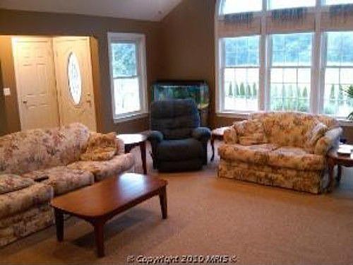 Beautiful stone fireplace located in living room with vaulted ceilings and large windows offering ample light anytime of day. This is a custom built one level home with large kitchen, corian counter tops, kitchen island, skylights, office, central vacuum and wrap around driveway. This home also feature a large sun room with huge windows facing the large back yard. This is a homepath property, please visit homepath.com for more details or contact the listing agent.