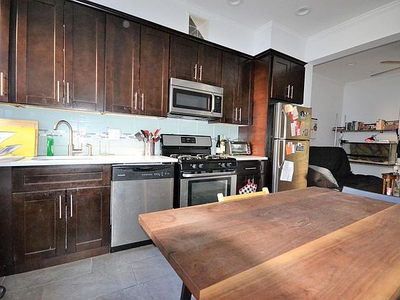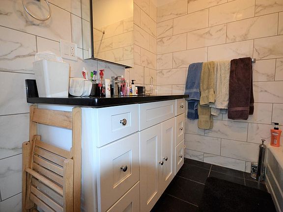 Beautifully renovated railroad style apartment. The spacious eat in kitchen features stainless steel appliances including dishwasher. The artisan tiled oversized bathroom boasts a bathtub. The extra large master bedroom has fantastic storage. A second smaller bedroom/nursery/work studio can be accessed either through the master bedroom or through its own private entrance in the hallway. Heat and hot water included. Pets ok :)