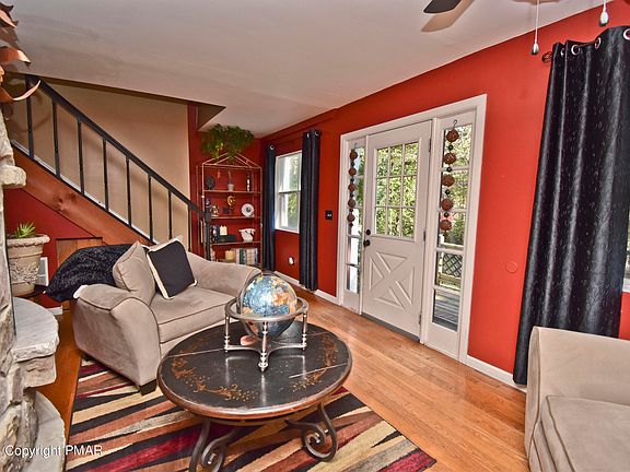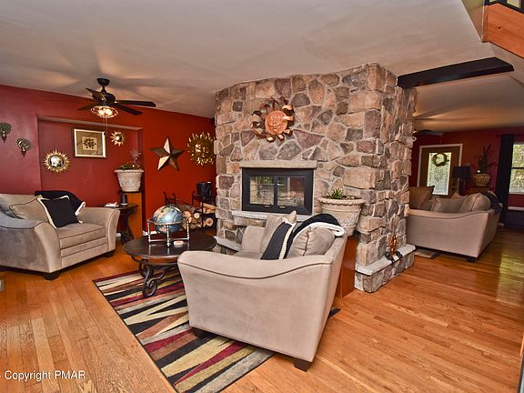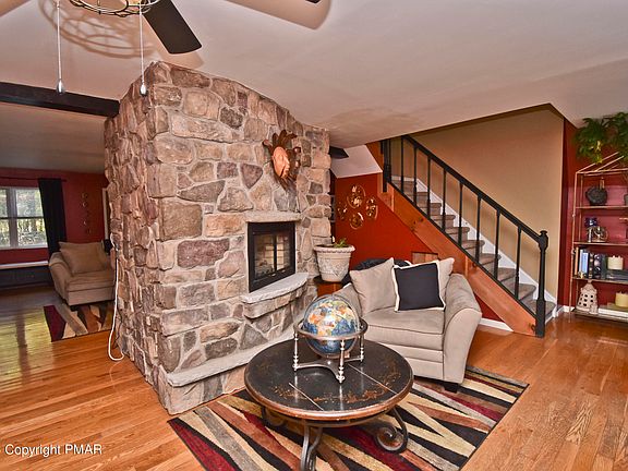GREAT HOME NESTLED ON PRIVATE LAND! This 3bd/2.5ba has a SPACIOUS Living Room w/ beautiful hardwood floors & an IMPRESSIVE TWO-SIDED STONE FIREPLACE, creating a cozy ambiance throughout. PREPARE TO BE ENCHANTED by the bright/airy Kitchen, a culinary enthusiast's delight w/ ample cabinet/counter space, island, skylights that bathe the room in natural light, & dining area. On this floor, you'll discover a den area, half bath, laundry, & also a WIC providing plenty of storage. The primary suite has its own WIC & an ensuite w/ a corner shower & a relaxing JETTED TUB. 2nd floor has 2bds/1ba ensuring that there's plenty of space for everyone. Outdoor living has a deck, overlooking your private oasis, fenced-in area, perfect for your furry friends to play safely, a koi pond, & 1 detached garage. Home is part of a lovely community & its commuter-friendly location ensures that you're never far from the best that the area has to offer. Don't miss this opportunity!