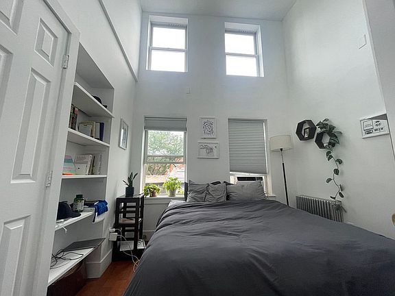 Newly renovated bright 2 bed/ 1 bath! This unit works great as a one bed with tons of light and can be used a 2 bed as well. Double Height Ceiling, hardwood floors and new kitchen and bathroom with stainless steel appliances. The unit is tucked away off a private courtyard. Steps away from the M train at Knickerbocker Ave and 5 min walk to the L train at Dekalb