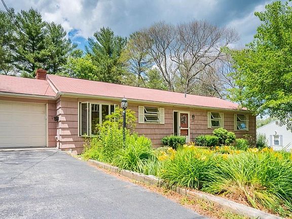 Would your choice be a different exterior color? Good news! At this new low price, Sellers will paint exterior Buyer's choice of color! Sought after neighborhood location with peaceful scenic view of reservoir ("THE REZ" - summer fishing and winter ice skating fun!) for this over sized, custom 3 BR ranch! First floor has huge LR/DR with fireplace and picture window views, sunny cabinet packed Kitchen with breakfast nook, 3 Bedrooms (2 with sliders to large deck) and 2 Baths including Master Bath! Home has quality built features of extra high ceilings, steel I beam construction and hardwood floors in BRs. Additionally there is a nicely finished walk-out basement Family Room with large, very clean storage areas with shelving, 2015 Boiler, 2016 electric panel, fenced in back yard with shed and apple tree!