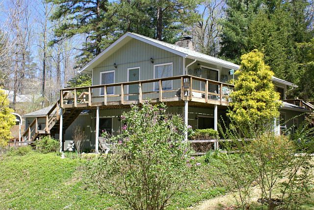 Live in Holly Hills, convenient to just about everything in Sylva, Dillsboro, Webster and Cullowhee. Very well maintained house on a beautiful 1.3+/- acre corner lot. You will feel like you live in a park! There is even a small stream flowing through the property. Upstairs includes Master bedroom and one full bath,large great room with formal dining area and living room with lovely rock fireplace, as well as eat in galley kitchen. Fully finished basement includes two bedrooms, full bath, huge family room and full laundry room. Bamboo flooring throughout much of the house. Good sun exposure on property. Front/side deck plus a lovely deck in the back perfect for outdoor entertaining. Artist studio attached to the house. There is also a good sized outbuilding for storing outdoor toys and tools. Single car attached garage plus oversized carport. Freshly painted exterior.