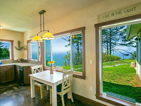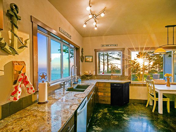 Shelter Cove California Panoramic Ocean View Living! Location! Location! Welcome to this craftsman custom home, relax and enjoy a front row seat with a 180-degree view of the ocean 200 ft above black sands beach. Open floor plan with many windows showing the beautiful ocean views. Master suite ocean views for the perfect evening ambiance! Walk in tile shower in the master suite. All one level - no stairs. Radiant heat and old-world clay textured walls, huge kitchen with granite countertops and induction stove and cook top. Fully fenced backyard and garden. On demand water heater and home surveillance system. Storage shed. Shelter Cove offers all black sand beaches, 9 hole golf course, Church, airstrip, eateries and community events .