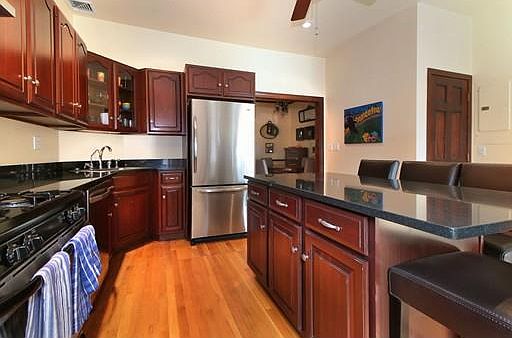 Stunning upper bi-level penthouse unit located on sought after K Street. With over 1,300 s.f, 2 beds/1.5 bath is located steps from East Broadway and a short walk to the ocean. This home boasts high ceilings, hardwood floors throughout, sun filled, and great for entertaining! Living rooms is spacious with real working fireplace. Separate dining/kitchen, stainless steel and granite, sunroom leading to private deck. Ample closet space, in-unit washer/dryer.