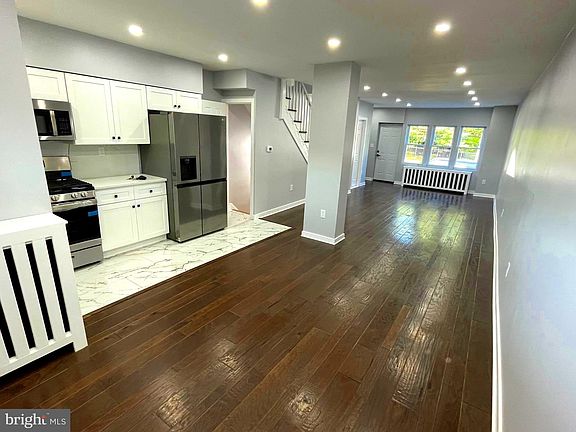 This beautiful home conveniently located near 69th and Market Street where you can access many public transportation routes and stores for shopping. It was recently remodeled professionally with all required permits and passed final inspection by Upper Darby Township inspector. You are welcomed on the first floor by a modern open concept living room, dining room, kitchen and a powder room tucked away in a corner. Hand scraped wood flooring and many recess lights has been installed in the living room and dining room. The elegant kitchen is well equipped with brand new stainless appliances, white shakers cabinets, quartz counter top and porcelain tiles. The second floor offers three bedrooms with ceiling fans and waterproof vinyl flooring. There is also the main bathroom with a tub shower, sky light and porcelain tiles. Additional living space in the basement was created by enclosing the garage and you can walk out to ground level in the rear where there is space for one car parking. Remodeling of this property includes; replacements of dry walls, windows, doors, flooring, plumbing ,electric and much more.