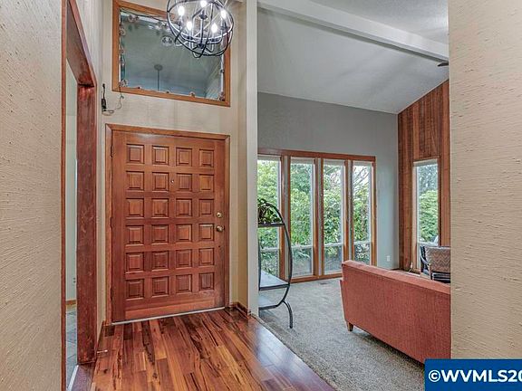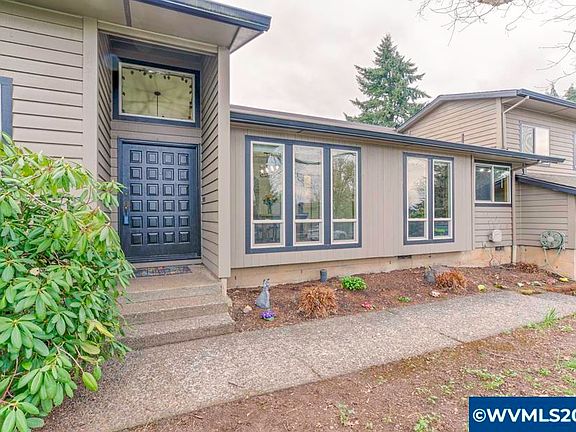 S Salem home on quiet street, near coveted schools. Vaulted living rm w/ certified woodstove & brick surround, formal dining room, LRG kitchen w/granite counters, appliances included. Big family room w/wet bar & fireplace. Primary BR has slider to yard, dual vanities, walk-in closet. 2 full baths, plus half bath, abundant windows. Lots of storage! Covered patio w/ skylights, outdoor shed, storage closet, chicken coop, raised beds, wood storage & more! Workshop in garage.New roof 2021, new heat pump 2019.