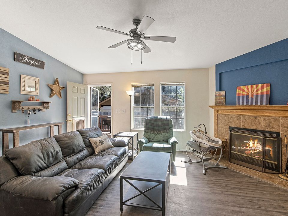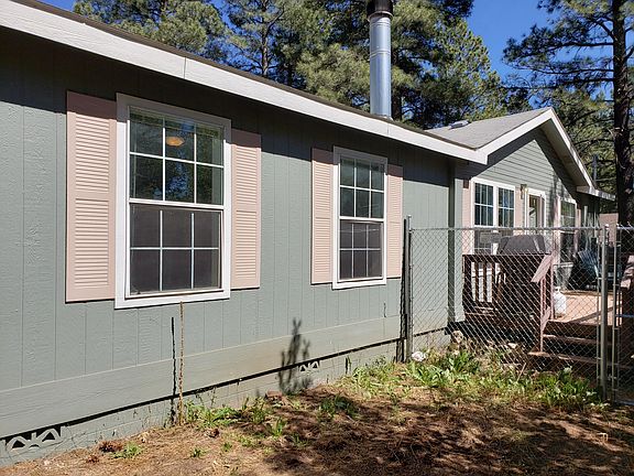 Lovely family home or a great investment opportunity on a level lot in the Ponderosa Pines Forest! This great home features an open floor plan, light and bright, with vaulted ceilings and new high-end vinyl plank flooring! Enjoy the spacious kitchen with island breakfast bar and large master bedroom. The exterior includes an open deck, fully fenced back yard, with storage shed, and plenty of parking space. Great neighborhood with miles of hiking trails and Forest Roads just a short distance away, so bring your toys and get ready to enjoy the cool fresh air and smell of the Pines! CHECK OUT THE VIRTUAL TOUR!
