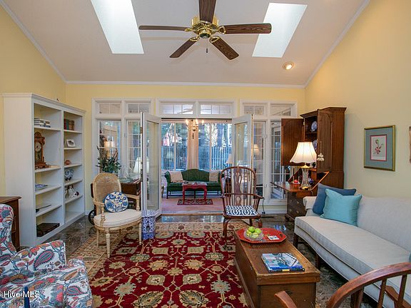 This beautiful 3-bedroom/2.5-bath home with fabulous curb appeal in the popular Lake Pinehurst area offers a wonderful open floorplan with spacious rooms, lots of natural light and many great features, all on one level! It has hardwood floors in many of the main living areas and bedrooms. You will feel the openness as you step through the front door of this home built by Bonville Construction to a dining room set off by round white wood architectural column and wide entry into a spacious living room with classic Italian Emperador marble floor and cathedral ceiling with skylights. A fabulous Carolina room has a slate stone floor and windows galore overlooking a peaceful backyard. An enormous eat-in kitchen and keeping room has vinyl floors, lots of granite counter space, breakfast bar and wall of windows across the back. Adjoining space is perfect for an office, playroom or hobby room. A secluded primary suite in this split plan home has a spacious bedroom with sitting area, double doors opening to keeping room and luxurious en-suite bath with double sink vanity, step in tile shower, water closet and walk-in closet with built ins. Two guest bedrooms are connected by a full bathroom. There is a great workshop off the garage. This home is on a beautifully landscaped lot with mature landscaping all around and a fenced backyard offering lots of privacy! This well-cared-for home is in great condition and in a nice Pinehurst neighborhood.