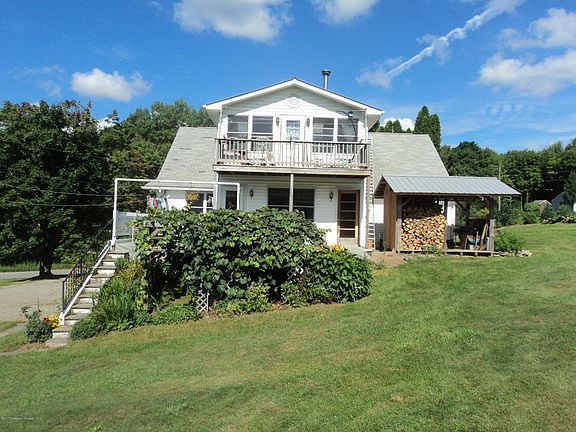 Two family, 1 1/2 story lakefront home built in 1966. Could easily be used as a one family home. First floor unit features a LR, eat-in kitchen, FR with wood heater, 3 bedrooms and a 3/4 bathroom. Second floor unit features LR, eat-in kitchen, 2 bedrooms and a full bathroom. Full basement with 2 car built in garage. Oil hot water baseboard heat with wood furnace add on. Fireplace in basement is for decoration only. Drilled well, on site septic. 1 electric meter service. Owner pays for all utilities. One car detached ''A'' frame garage. 5.36 acres+- with extensive lake frontage on 10 acre+- private lake. Excellent views of the water from house. Includes income producing 21% Cabot Oil and Gas lease. Great for in laws or extended family.