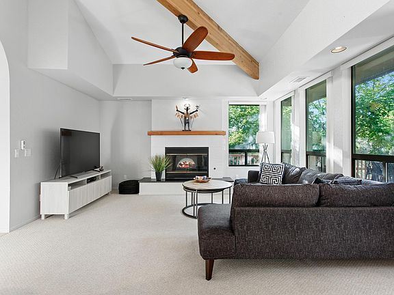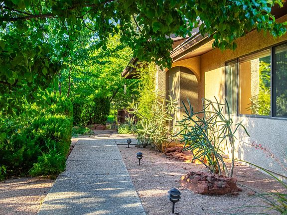 Gated community in "Village of Oak Creek" Canyon Mesa County Club. Golf, Tennis, Pickleball, Seasonal Pool, Year Round Hot Tub, and amazing hiking trails just outside your door. Enjoy an extended stay in this modern, upscale townhome with sleek, clean design, one level living. 2beds/2baths with a Study that has a pull out sofa, 2069 sq. ft., fully furnished, beautifully updated, vaulted ceilings, huge deck, on golf course but private, contemporary with the classic stucco and tile roof with 2 car garage. Corner unit. Small dog maybe allowed with additional deposit at owners discretion. Flexible lease term for longer stay but one month minimum. Owner pays cable/internet, water, trash, landscaping maintenance and the tenant pays electricity.