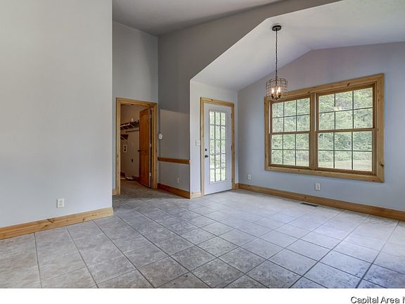 Beautifully custom built ranch in Spaulding! Incredible lot offers privacy, serene views, timber and sits back quietly from the road. Step inside & you'll be greeted by a captivating tiled foyer space, vaulted ceilings & trendy light fixtures & hardware. Naturally lit & neutrally colored rooms are bright & inviting in this floor plan. You'll love the formal dining & huge breakfast area off the kitchen ideal for those family gatherings. Gorgeous great room w/hardwood & floor to ceiling stone fireplace as the focal point, plus generous bedrooms & storage space. Huge Outbuilding too!