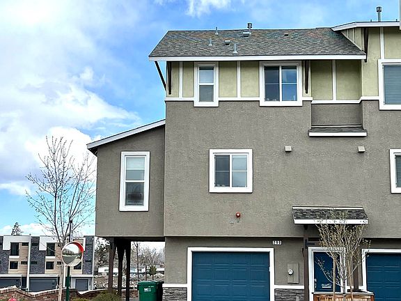 Stunning end unit in Upstream Townhomes nestled on the Truckee River in the Dickerson area. Kitchen is nicely upgraded with dove grey cabinets, custom granite counters, large island & stainless appliances. Light and bright and an easy walk to paths and Oxbow Park. Nice setup for roommate with bdrms 2 & 3 sharing a bath. Primary suite enjoys natural light and walk-in shower. Spacious balcony off living area to enjoy summer evenings. LARGE GARAGE at 619 SQUARE FEET with bump outs for storage or workspace., There is a walking/exercise path, dog park, picnic tables, BBQ area, covered seating and horseshoe pits in the subdivision.