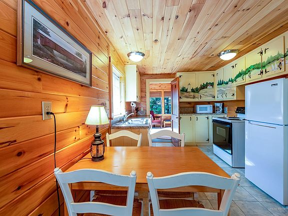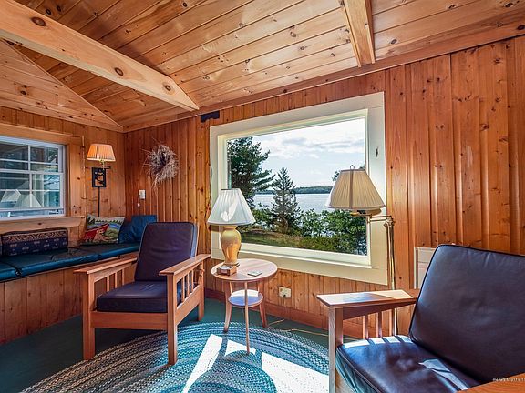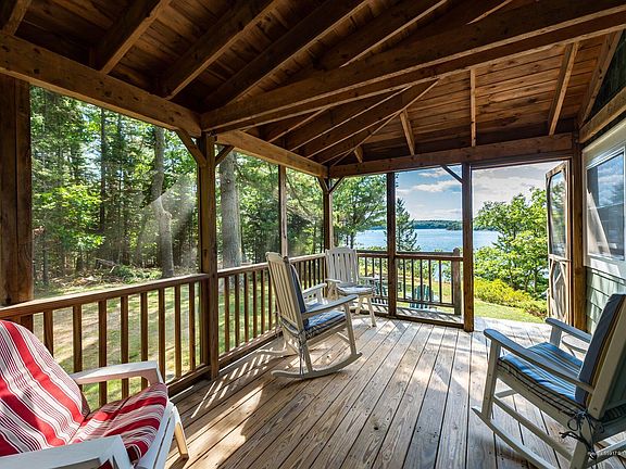 Deep water with sweeping sunset views. This neat & tidy cottage offers unexpected privacy on an elevated lot and dock/mooring potential. Located just minutes from open ocean by boat and a few miles to one of Maines most popular beaches by car, you'll enjoy the boating, hiking, and swimming opportunities during the day and taking in a colorful sunset from the porch in the summer or warmed by the fireplace on the cooler evenings. This cottage is heated, so weekends in the offseason are an option here too. This property features an open floor plan with cathederal ceilings delivering spacious and sunny living areas and with 2 bedrooms (each with a bath) with a loft, this an attractive seasonal rental property as well. 2021-10-27