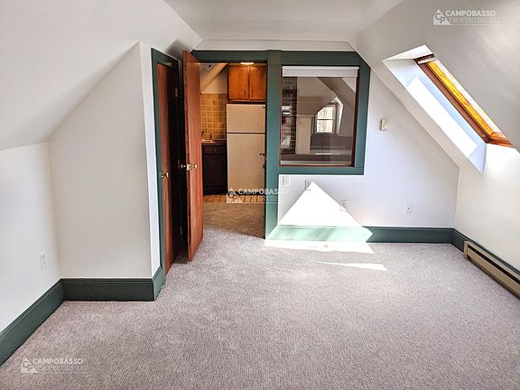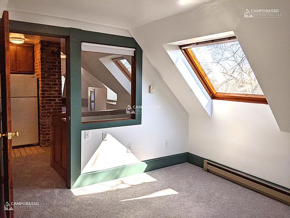 EMAIL INQUIRIES, ONLY No fee! Low/sloped ceilings in renovated apartment. Top floor apartment. Quartz countertops, carpet, glass shower, and new light fixtures! Plenty of sunlight! This unique layout is located in East Arlington. This charming 1 bedroom features 2 skylights, window seat with additional storage, spacious living area and the apartment has two entrances! There's a shared backyard and porch, comes with 1 parking space, storage in the basement. On the busline! Cat or dog allowed with pet rent. Trash, recycling, and water included. Tenant responsible for electricity (heat & hot water powered by electricity), Tenant responsible for cable and internet. No deposit! First & last due at signing. AVAILABLE IMMEDATELY! WE WILL NOT HOLD THE APARTMENT FOR MORE THAN 2 WEEKS FROM TODAYS DATE. There is no laundry in the building. There are nearby Laundromats a few minutes away. *There is no application fee as displayed below, the $30 charge is for running background and credit. EMAIL INQUIRIES, ONLY. 1 year