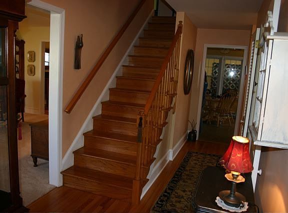 Beautiful Al Kutz-built brick Cape Cod located in a charming, quiet area in the desirable North End. Nicely landscaped corner lot w/ stamped concrete front walkway & patio. This lovely home has been exceptionally well maintained and is loaded with charm and upgrades. The slate floor entryway leads to beautiful hardwood floors. The large eat-in kitchen boasts a flat-top stove, plenty of cabinet and counter space, ceiling fan, garbage disposal, and more! The main floor includes a spacious living room with plenty of natural light, a formal dining room, and a cozy den/office with newer carpet and built-in desk and shelves. The first floor also offers an updated powder room and a large sun room. Upgraded tilt-in windows have been added throughout. Upstairs there are 3 generous sized bedrooms ~~~ the roomy closets each contain a light! There are plenty of built-ins, and a full ceramic tile bath with linen closet. The warm hardwood floors continue throughout the house. The full basement provides plenty of storage, a large walk-in cedar closet, washer and dryer, and a walkout exit. There is convenient inside access to an oversized 2-car garage, and a driveway for additional off-street parking. The lovely fenced rear yard provides plenty of room for entertaining on the stamped concrete patio. This welcoming home is move-in ready!