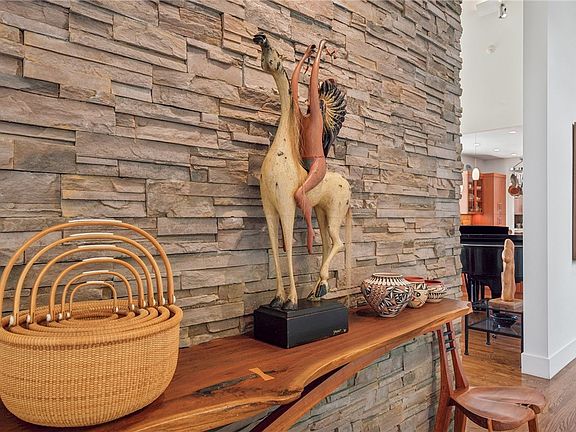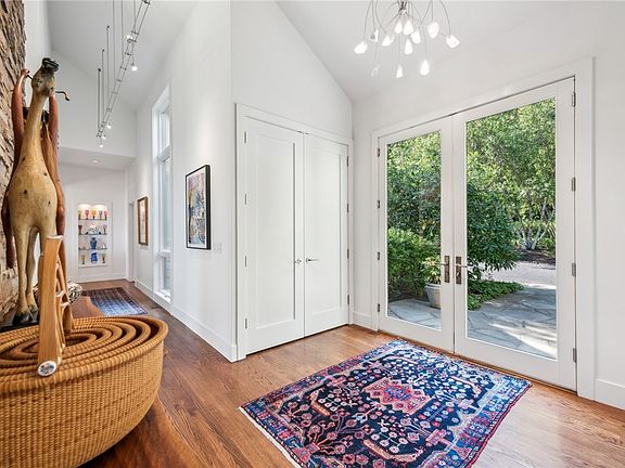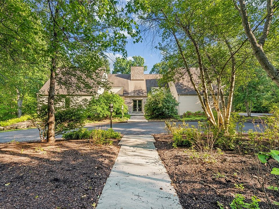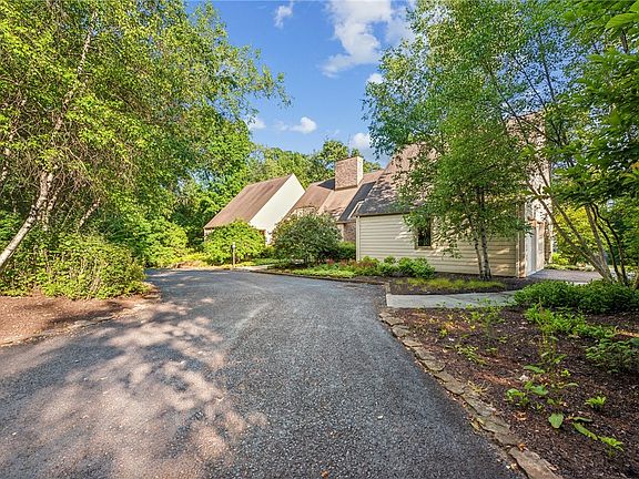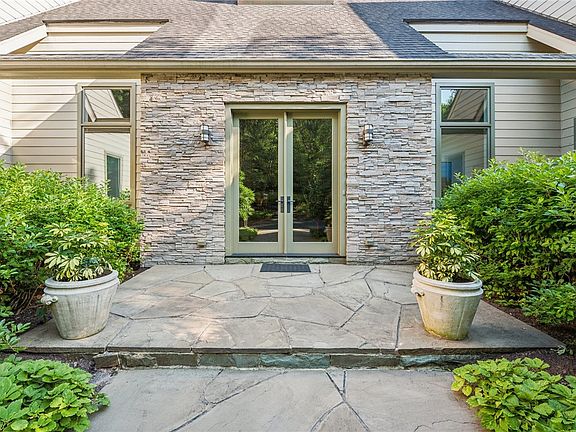 Stunning Contemporary designed by Carpenter Construction to bring the outside in, this architectural masterpiece is nestled on 14.5 acres offering total privacy and breathtaking views. The gourmet kitchen boasts cherry cabinetry, granite counters, high-end appliances, and a butler pantry. The open floor plan features a great room with a soaring ceiling and a stone fireplace. The primary bedroom includes a luxurious bath and an incredible walk-in closet/dressing room. Additionally, there's a home office or bedroom with built-ins, and a 2-bedroom guest suite. Efficient geothermal heating, a whole-house generator, and an expansive stone patio make this home ideal for entertaining.
