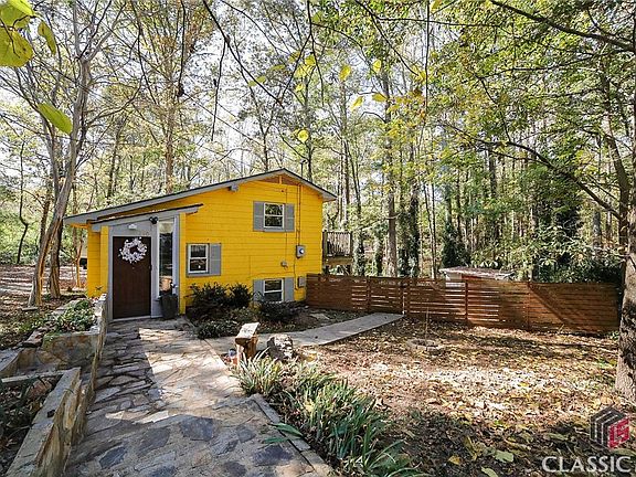 DETAILS: *2 Bedrooms/1 Full Bath *1320+/- SqFt. *Year Built - 1968 *.50 Acre Wooded Lot Bordering Cedar Creek. SPECIAL FEATURES: -Engineered wood and Laminate Floors -Neutral Paint Palette throughout the living areas -Double Paned Windows, Custom Reclaimed-wood Front Door, -Multiple Living Areas. FLOOR PLAN: -Modern Split-Level Design. -Welcomed by the quaint Foyer, the expansive, vaulted-ceiling Great Room spans the main level. The living areas are partially separated by the stair case to the upper floor allowing for designated areas perfect for formal dining or study. -Just up a few stairs is the expansive Eat-in Kitchen providing whimsical flare with the custom cabinets, sprawling counters, stainless appliances less than 3 years old, double-basin sink, French door access to the rear deck, and also lends space to the large breakfast room. APPLIANCES: *Smooth-top Stove/Oven Combination *Dishwasher *Refrigerator. -Immediately off the Kitchen is the upper level bedroom complete with ceiling fan light fixture and closet with shelving system. -Travel down to the lower level where you’ll find the Primary Bedroom and updated Full Bath. Airy and bright, the Bedroom offers laminate floors, ceiling fan light fixture, and spacious closet. -Primary Full Bath features honeycomb tile floors, tiled shower/tub combo, linen closet and updated vanity with vessel sink. -The Laundry, including washer and dryer, is housed inside a Multi-Functional Room that could serve as a Office, Hobby Space, Mud Room, Oversized Laundry Room, Storage…the options are endless. The lower level also provides access the to the covered deck. EXTERIOR: ~Custom stone pathways leading to the front entry. ~Rear Deck ~Private, Terrace-Level Covered Deck and Patio, ~Custom-built Storage Building (less than 2 years old) ~Additional Small Shed, ~ Fenced Rear Yard, ~Raised Garden Beds, ~Dead-End Road with Multiple Parking Spots. EXTRAS: -All Electric Systems, -City Water and sewer, -Concrete and Block Construction. LOCATION: —4 miles from Downtown Athens and UGA —6 minutes to Loop 10 —Direct Access to City Bus Line —Immediate access to everything East Athens has to offer! This woodsy haven boasts a unique layout, and fantastic amenities all while providing a convenient, in-town location. You must see this charming gem to truly appreciate all the character it has to offer.