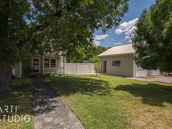 area. Laminate and tile flooring. Primary suite with walk in tiled shower, granite bathroom counter. Laundry area with cabinets. Lots of storage throughout with large attic storage access in primary walk-in closet. Front sitting porch & Back Patio with Pergola. Pressurized Irrigation Water for yard & garden, only $12/mo. Enclosed Garden prepped for vegetables. Fruit Trees (apricot, apple, pear). Garden boxes. Room for a pool. Backyard storage shed with electricity The listing Broker's offer of compensation is made only to participants of the MLS where the listing is filed.