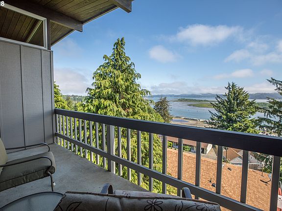 Bay view condo on Telegraph Hill! Top-level unit with sweeping views of Coos Bay! Spacious vaulted open concept with custom vinyl windows letting so much natural light in. Bamboo flooring throughout, Corian counters in kitchen, beamed ceilings, large dining area, and covered balcony. Includes covered parking space. HOA fee includes water/sewer, garbage and common ground landscaping. Rest, relax and watch the ships come in!