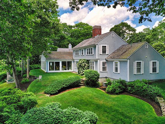 Spectacular sunsets and expansive water views across Cotuit Bay from this Oyster Harbors waterfront estate. Enjoy watching the boats motor between Cotuit Bay & North Bay through ''The Narrows'. Meander across the professional landscaped grounds to your own paved driveway leading down to the water's edge. Slip in a paddle board or kayak and enjoys hours of peaceful gliding throughout Cotuit Bay, North Bay & West Bay. This sprawling 4,100 sf home provides water views from all rooms. The exceptionally large sun room provides multiple gathering areas for all family & friends to enjoy while soaking in the water views & southwest prevailing breezes. The 1st floor also consists of a large formal living room w/ a fireplace, an impressive family room w/ a soaring ceiling, beams, & a fireplace, a kitchen, half bath, & a large master suite w/ a multitude of closets. The 2nd floor of the main house features two bedrooms & a bath (all w/ water views). There is a large bunk room (w/ water views) and bath above the oversized 2-car att. garage. Peaceful waterfront living! The septic system has failed and will be the Buyer's responsibility to replace. All info. should be verified by potential Buyers & their representatives. The swordfish weathervane is excluded.