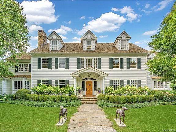 Character,Privacy & Craftsmanship are blended to create an idyllic lifestyle in this expansive Westport country estate. Four finished floors offer versatile rooms for all ages. Built w/the highest quality finishes & in perfect like new condition. This classic colonial was created w/old world charm yet offers all of today's must have amenities. The impressive two story foyer has elegant, curved staircase, arched doorways that invite you to the formal living spaces as well as to the generous and sweeping back porch overlooking the meticulously landscaped property. Just beyond the amenities abound in the heated pool, pool house, stone patio w/built in grill & garden paths that lead to the tennis court and detached barn. The gourmet kitchen has a large center island, stone & brick pizza oven, granite counter tops, walk in pantry, plus a butlers pantry leading to formal dining room. The breakfast area is next to the great room w/ a raised hearth field stone fireplace, post a &beam vaulted ceiling along w/a large built in bar. The gracious first floor master wing offers a beautiful bedroom with vaulted ceilings, fireplace, exceptional master bath w/steam shower, soaking tub & heated limestone floors plus two outfitted dressings rooms. The paneled study off of the master has a fireplace, built in cabinetry and bay window plus another second level office or workout space above. The lower level has a magnificent theater, wine cellar, bedroom, bath & game room. Your own private oasis!