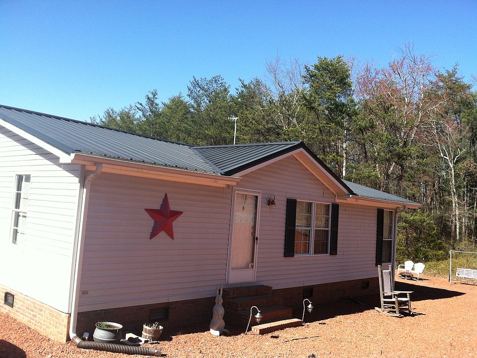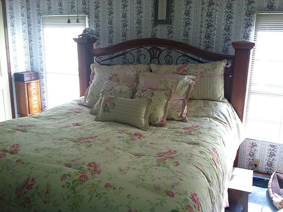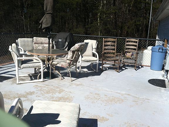 Tucked away on 4+ Acres with decorative mulch and brick chips,No Grass to cut! This cozy 2 bedrooms, 2 baths home offers a huge elevated fenced brick patio overlooking the woods with beautiful pond access. Very well maintained with like new metal roof, bricking, carpet and flooring, refrigerator, stove and dishwasher, plumbing, light fixtures and ceiling fans, alarm system and very tastefully decorated. Very private, located at the end of dead end road. Perfect for small families, first time home buyers, second home or rental property. Listed tax value is only for house and 2.49 acres, there is 1.66 acres more listed on a seperate parcel. Appraised for over $80,000.