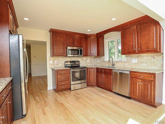 This is a wonderful cape located on a beautiful private lot edged with trees yet located near school and golf course. Only minutes to library, stores, movie theater, restaurants, pool, tennis and shopping plus seconds to major highways. The home was remodeled with a beautiful kitchen with granite, new cabinets, new bathrooms, new floors, windows and so much more. A large family room is in the lower level and an oversized fenced patio was recently added. Two bedrooms are on the first floor. This is a 4 bedroom home. Only 1 1/2 hr to NYC for museums and theater by car and 1/2 hr to train station. Owner has dogs so 24 hr notice is necessary to show.