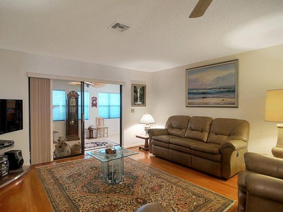 Beautifully Updated End-Unit Villa by the Beach. 2 Bdrms and 2 Fully Updated Baths, Nice Newer Kitchen, Hardwood Floors in Living/Dining Rm, Skip Trowel Textured Ceilings, Enclosed Porch Under A/C for added living sqft, Inside Laundry with LG Tromm Washer and Dryer. Upgraded Electrical Panel, Impact Windows in the home & garage except on Porch and One Car Garage. Great Location Near Community Pool, Walk to Paradise Beach Park, or Restaurants, Bars, Beauty Salon and More. Room sizes are approximate and subject to error.