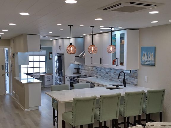 This 2 bedroom 2 bath townhome is a very bright end unit with no stairs is just a block from restaurants, shops, Walgreens, and Paradise beach that has restrooms, lifeguards, playground, pavilions, sand volleyball and our building is next to the heated pool. The ultra modern kitchen features 42 inch kitchen cabinets, quartz countertops, ultra quiet vented range hood and newer efficient high end appliances with transferable warranties. High quality vinyl plank flooring in the kitchen and living room. Newer high efficiency 22 seer ductless air conditioning system with separate temperature controls for each room keep the electric bill low. Instant hot water to every faucet keeps the water bill low. Individually adjustable lighting allows any color or brightness setting you desire! The very reasonable $478 HOA fee covers, roof, insurance, all outside maintenance, 600mbps internet, and 155+ cable channels. Washer/dryer Inside, garage + 1 parking spot.