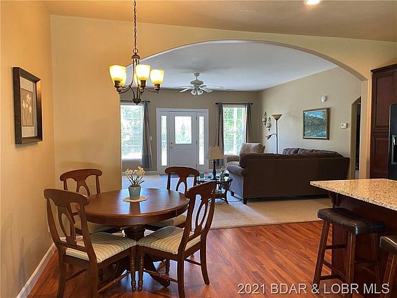 So many Positives with this One Level Ranch Home! Located inside the City of Camdenton, but very private setting at the end of a Cul de Sac with no houses next door and a Level Yard! Meticulously maintained, Maintenance free Exterior-Move in Ready-There isn't anything you'll need to do! Close to the City Park and Pool! Features an Open Floor Plan with a large Living room, Kitchen w/ Custom Cabinetry and Granite Counters, 3 bedrooms, 2 Baths, including the spacious Master Suite. You will love the back yard setting with patio and wooded area. Garage has pull down steps to attic storage.