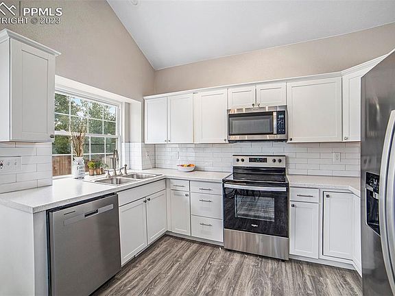 Welcome to your dream home! This newly remodeled 4 bedroom home on a cul-de-sac boasts a spacious and airy floor plan with vaulted ceilings, perfect for entertaining family and friends. As you enter the home, you'll be greeted by a cozy living room that opens up to a modern kitchen complete with brand new stainless steel appliances, cabinets with crown molding and countertops, for cooking and gathering. The upper level features 3 bedrooms, each with its own beautifully appointed bathroom. The master bedroom has a luxurious en-suite bathroom with double sinks and tub and shower combo. Downstairs, you'll find a large family room with a fireplace that can be used as a game room or home theater. One of the highlights of this home is the covered patio that overlooks the backyard. This is the perfect space to enjoy your morning coffee, read a book, or just soak up some sun. The backyard is large enough to accommodate a barbecue, a fire pit. Nearby, you'll find parks, schools, shopping centers, and easy access to major highways for commuting. Close to Fort Carson and Peterson Air Force base. Call for your private showing.