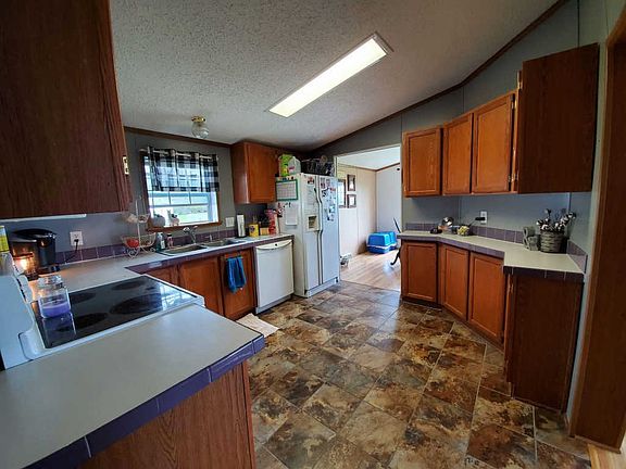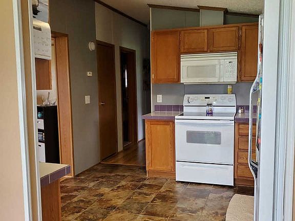 Nicely updated 2 bed, 2 bath manufactured home with additional lot. This home has a huge master bedroom with private full bath, vaulted ceilings, new flooring and main laundry. There is a covered porch over the back of the home, a storage shed and 2 stall garage with addition off the back. The yard is completely fenced! Move in ready.