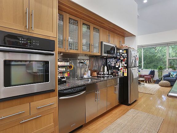 Riverbank Loft. This stunning two-level unit offers open concept living with 12-foot high ceilings and expansive views of the Charles River. The large dining room, with simple elegant storage cabinet and bamboo hardwood floors, leads to a sleek modern kitchen with gorgeous wood cabinets, stainless steel appliances, dishwasher, garbage disposal, in-unit washer & dryer, and granite countertop. The kitchen opens to brightly lit living room with south-facing windows and looks out to recreational trails and beyond. Stairs ascend to a spacious sleeping loft which accentuates the grace of the open floor design. Amenities: central a/c, in-unit laundry, extra storage pantry, lovely bathroom with shiplap board wood accented ceiling, full bathroom with detachable shower, elevator, bike storage, and two-car deeded parking. The building has professional management and high-owner occupancy (as of August 2022). Close to Watertown Square shops and restaurants, express bus to Copley Square and downtown Boston. Pets permitted. No smoking allowed Tenant responsible for all utilities 60 day notice of non renewal of lease required First month, last month and security deposit are due at signing