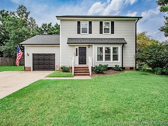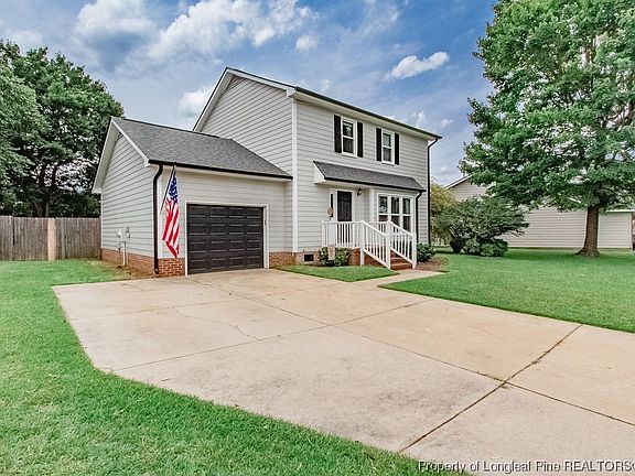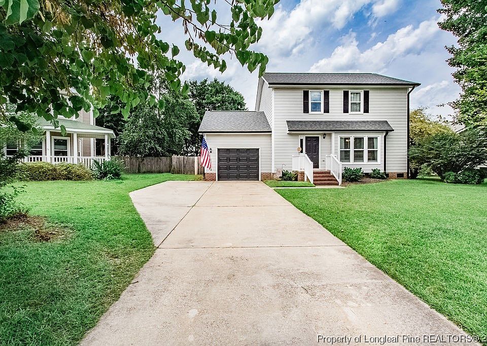 What makes this one different? Serene, cul-de-sac lot with plenty of room to run, play, and entertain in the flat back yard. Updates throughout the entire home that include new roof in 2022, new HVAC in 2019, 15x30 ft patio great for entertaining, air ducts were cleaned in 2023, gutters added in 2021, new garage door in 2022, Ecobee thermostats up and down stairs, Security system, TV mounts to convey, ring doorbell, blinds custom cut from Blinds Plus, workbench and hanging storage in garage. Tile flooring in bathrooms, newer LVP downstairs. Room to create and entertain in the large kitchen with beautiful granite countertops, SS appliances, and a generous pantry. Designer wall in one of the spare rooms. Bedroom 2 would be great for a home office. Well lit master is very large with ceiling fan and walk in closet. Laundry room down stairs. Upstairs has carpet throughout. Easy access to Fort Liberty and shopping, 10 mins from downtown baseball stadium and airport. This one is a must see!