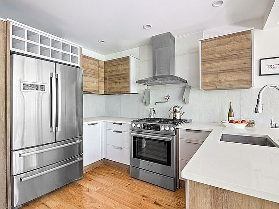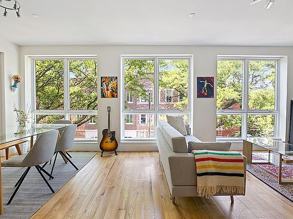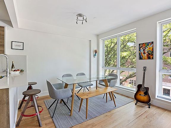 This sun drenched condo is part of a beautiful boutique development located on a gorgeous treelined block in the heart of East Williamsburg. This 2 bedroom 2 bathroom home is a floor through, double exposure unit with a private balcony. The elevator opens directly to a private vestibule. Upon entrance to the unit, you will be greeted with an extra wide 25-foot living/dining area and 3 big and bright windows with a beautiful tree top view. The open kitchen features a Caesarstone island countertop with room for dining, ample counter-space, modern sleek cabinets and Bosch stainless steel appliances. The master suite has entry to a large walk-in/walk-thru closet to the designer ensuite bathroom. The sliding glass doors in both the master suite and the large secondary bedroom not only allow access to the balcony, but also offer beautiful morning light, making both rooms bright and inviting. Both the master and guest bathroom are equipped with deep soaking tubs, as well as dual rain shower heads and sleek tile design. State-of-the-art LG washer/dryer and a Mitsubishi heating/cooling system are also included. 290 Powers is located on a quiet, residential, treelined lined street just around the corner from the Grand street L station, just minutes to the city. With two community gardens, one across the street and the other just a few doors away, and just 3 blocks from lovely Cooper park, there is no lack of accessible green space. It is surrounded by numerous highly acclaimed restaurants, cafes, bars and famous breweries. Several brand new or newly renovated organic grocers are located nearby and plenty of boutique shopping can be found minutes away on Graham Ave.