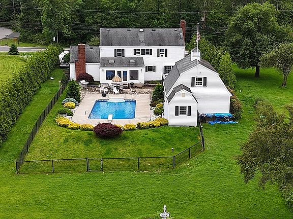 In-ground poolRemodeled kitchenTwo-car detached barn-style garageLight-filled sunroomPartial basementLandscaped groundsFour spacious bedrooms
